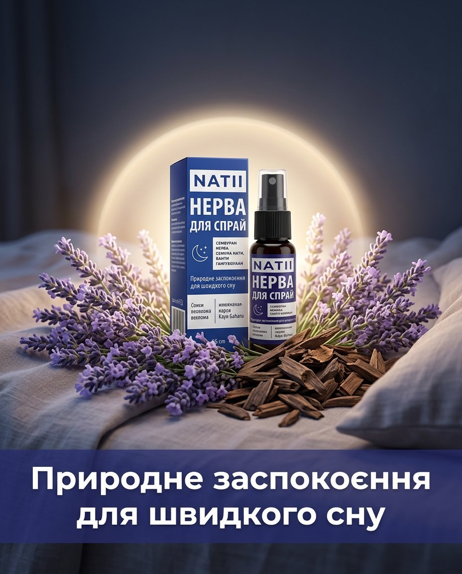 Представляємо NATII – інноваційний трав’яний спрей, що поєднує в собі силу агарового дерева та лаванди для миттєвого заспокоєння. Завдяки унікальній формулі, NATII допомагає заснути всього за 5-10 хвилин, природним чином готуючи ваш розум і тіло до глибокого відпочинку. Тисячі вже спробували та переконалися в його ефективності.
